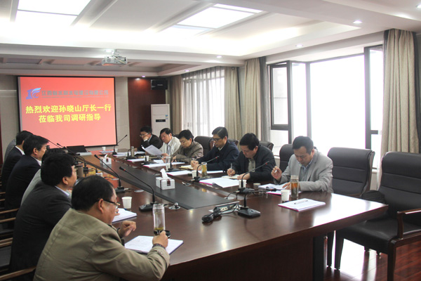 孫廳長一行與我公司總部中、高層管理人員進行了親切座談。會談一開始,孫廳長開門見山的指出,根據(jù)黨的十八大精神,為使江西水利工作更貼近群眾、貼近社會,轉(zhuǎn)變工作作風(fēng),更好地為建設(shè)小康社會服務(wù),這次調(diào)研主要是聽取省水建公司作為以水利為主業(yè)的施工企業(yè)對水利公共服務(wù)工作的要求和建議,以及由省屬水利企業(yè)改制后闖市場、走天下的感想和體會,為下一步加快江西水利改革發(fā)展、加強水利市場管理提供參考和借鑒經(jīng)驗。