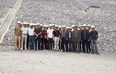 學習團第一站是大麥西項目,項目負責人熊錦江帶領大家參觀了項目營地并對項目營地規(guī)劃建設、布置原則,水電解決方案等作了介紹。學員們隨后又參觀了油料庫、鋼筋加工、砂石料生產系統(tǒng)、混凝土制拌系統(tǒng)、上壩公路、導流涵管、溢洪道及主壩施工區(qū),項目負責人給學員們講解了現場各個作業(yè)面的安全預防把控、管理核心、質量控制點、施工工藝程序等。學習期間,學員們和項目部在會議室召開了簡短的座談會,大家觀看PPT并進行交流,通過溝通學員們進一步了解和掌握了大麥西項目的難點要點。